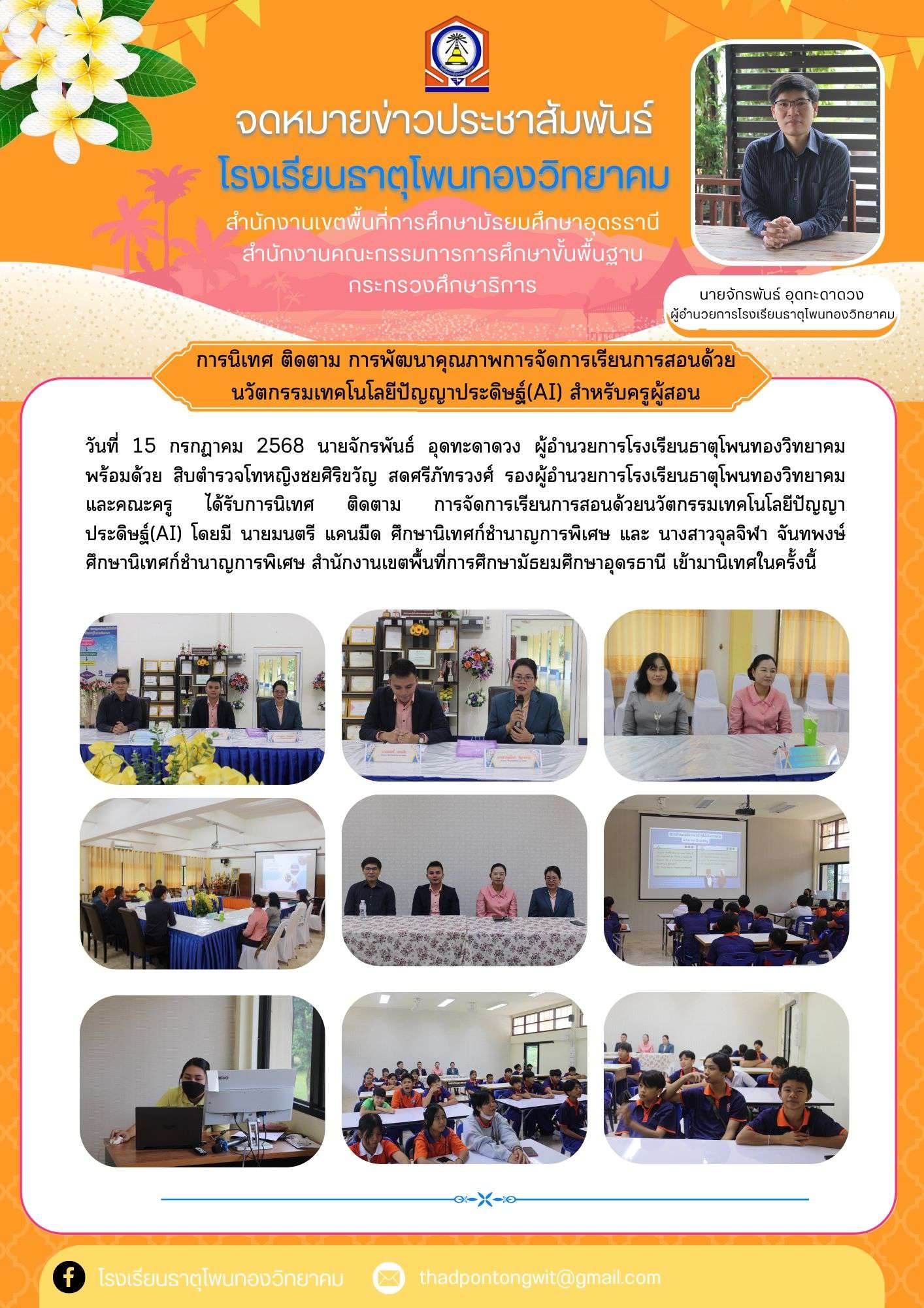 การนิเทศ ติดตาม การพัฒนาคุณภาพการจัดการเรียนการสอนด้วยนวัตกรรมเทคโนโลยีปัญญาประดิษฐ์(AI) สําหรับครูผู้สอน