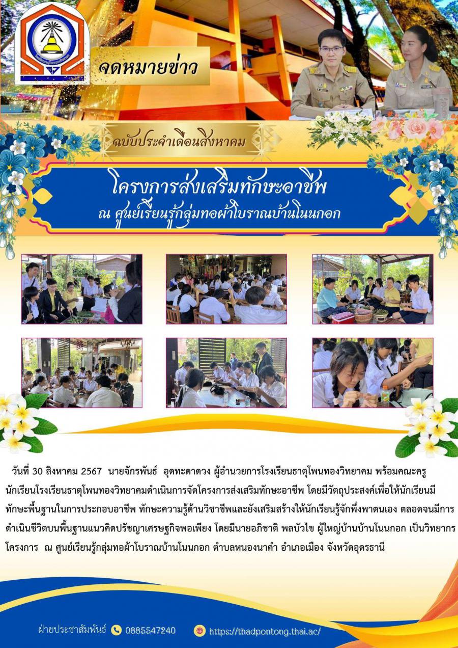 โครงการส่งเสริมทักษะอาชีพ โดยมีวัตถุประสงค์เพื่อให้นักเรียนมีทักษะพื้นฐานในการประกอบอาชีพ