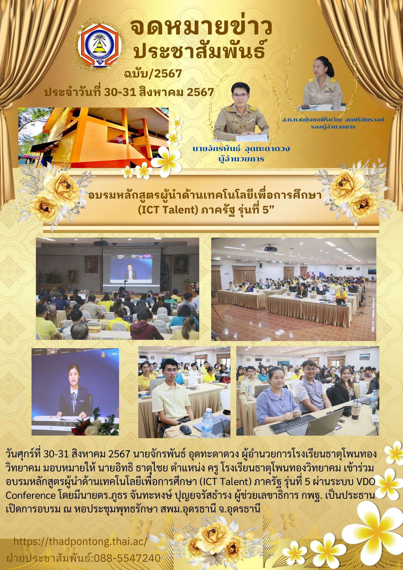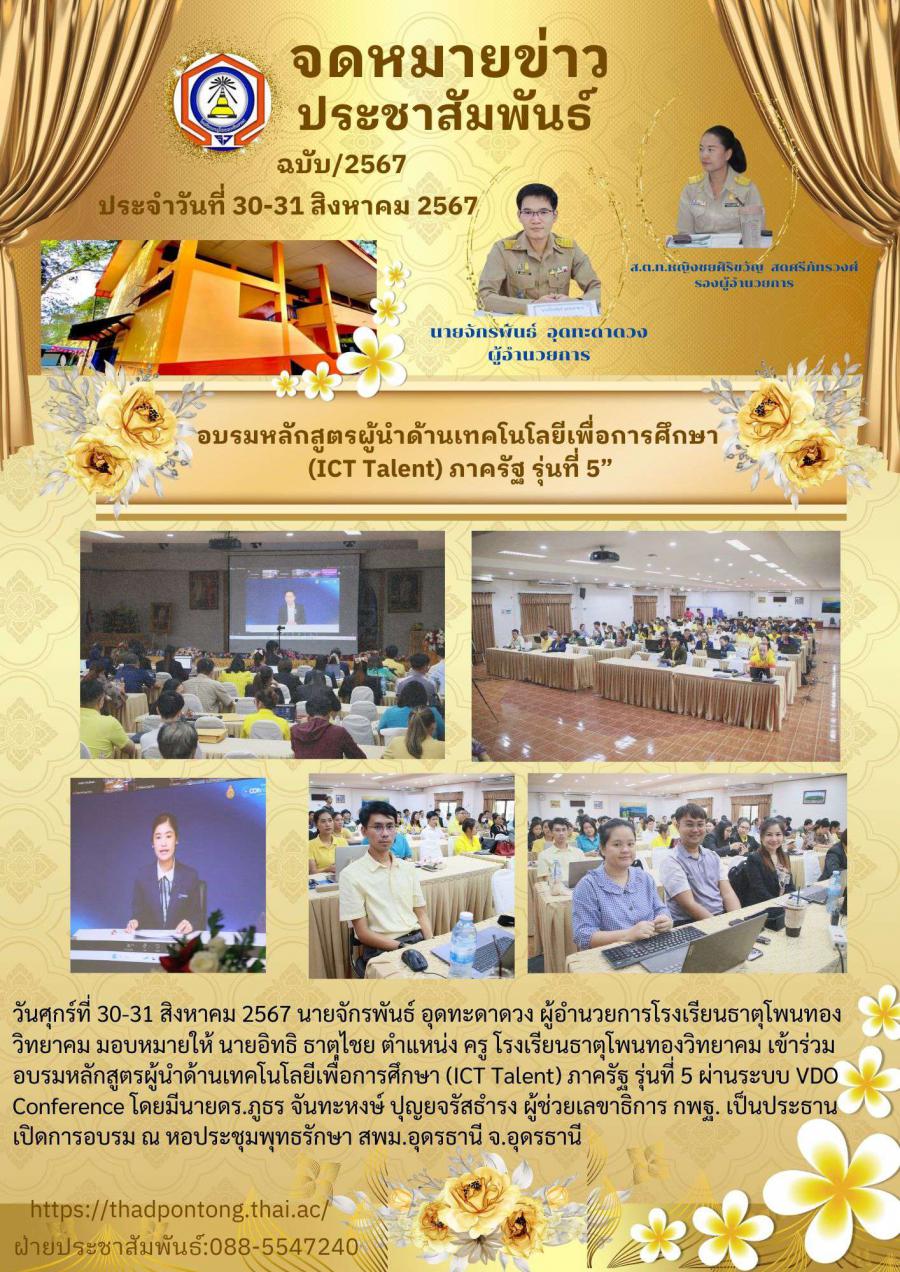 ครูโรงเรียนธาตุโพนทองวิทยาคม เข้าร่วมอบรมหลักสูตรผู้นำด้านเทคโนโลยีเพื่อการศึกษา (ICT Talent) ภาครัฐ