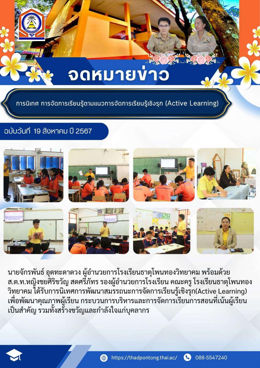 เมื่อวันที่ 22 สิงหาคม 2567 นายจักรพันธ์ อุดทะดาดวง ผู้อำนวยการโรงเรียนธาตุโพนทองวิทยาคม พร้อมด้วย สิบตำรวจโทหญิงชยศิริขวัญ สดศรีภัทร รองผู้อำนวยการโรงเรียน คณะครู โรงเรียนธาตุโพนทองวิทยาคม ได้รับการนิเทศการพัฒนาสมรรถนะการจัดการเรียนรู้เชิงรุก(Active Learning) เพื่อพัฒนาคุณภาพผู้เรียน กระบวนการบริหารและการจัดการเรียนการสอนที่เน้นผู้เรียนเป็นสำคัญ รวมทั้งสร้างขวัญและกำลังใจแก่บุคลากร